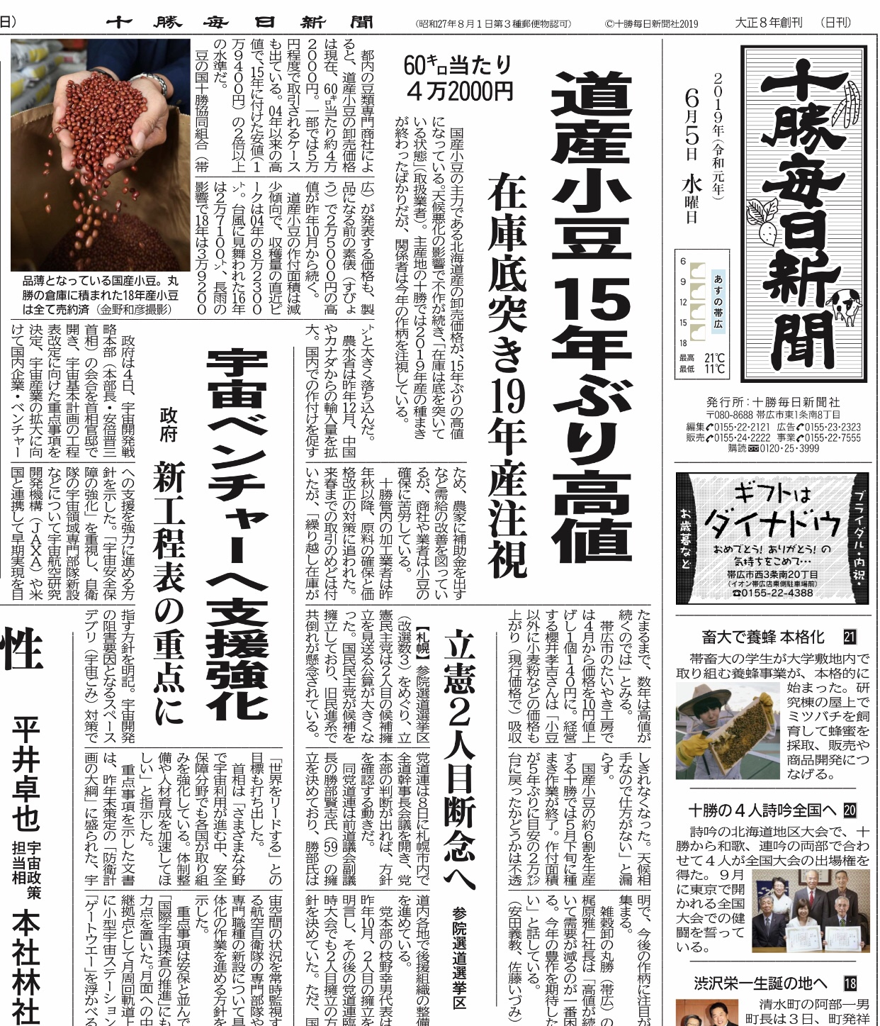 道産小豆の卸売価格高騰に関する記事が掲載されました